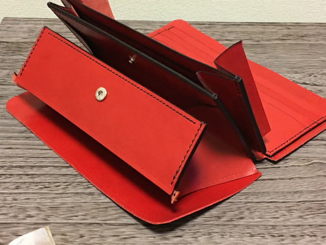 ギャルソン財布は、普通の長財布タイプが多いですが、今回はラウンドファスナー財布に組み合わせました。